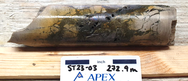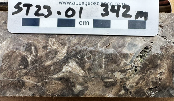 Importantly, the deeper mineralization encountered in ST23-01 suggests this drill hole intercepted the outer chalcopyrite/pyrite/sphalerite zone of the sediment hosted system.