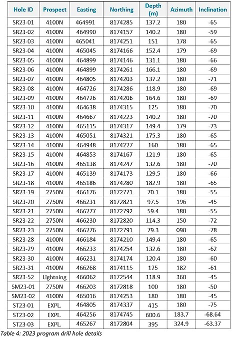 DRILL HOLE ST23-01 DETAILS
