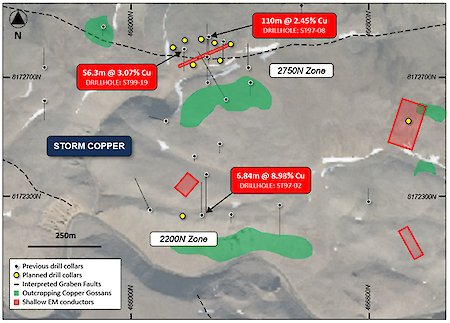 Significantly, the new conductors are consistent with the EM responses of known massive chalcocite mineralization on the Storm property. These newly defined conductors present a number of compelling new and untested drill targets that will be drilled during this exploration program.