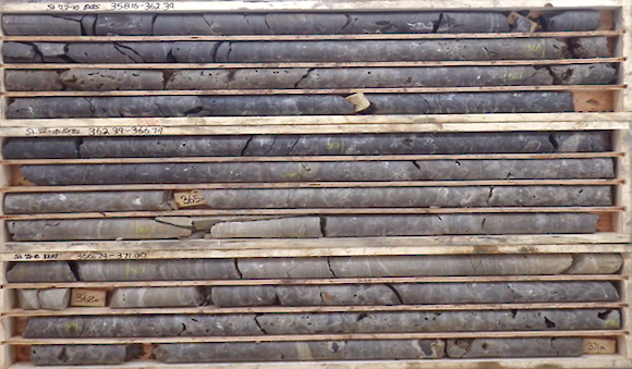 Figure 6: ST22-10 drill core between 358.16 – 371m downhole showing the vuggy nature of the carbonate rocks. The vugs can contain variable amounts of chalcopyrite, sphalerite, calcite, pyrite and bitumen.