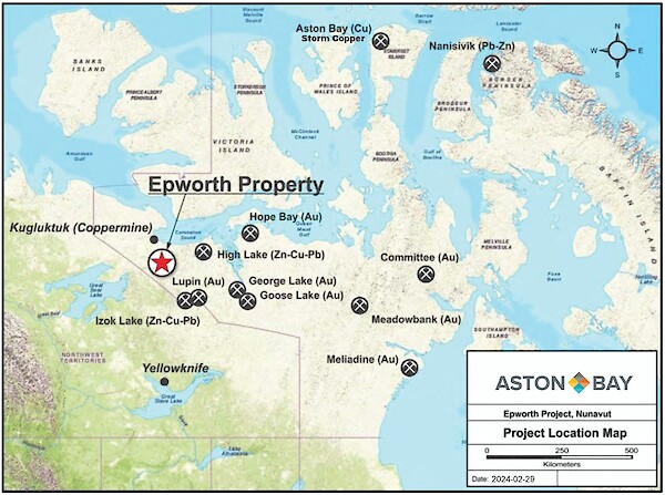 Toronto, Ontario, June 27, 2024 - Aston Bay Holdings Ltd. (TSX-V: BAY; OTCQB: ATBHF) (the “Company” or “Aston Bay”) is pleased to announce the proposed summer 2024 exploration program at its Epworth sediment hosted copper-silver-zinc-cobalt project located 80 kilometres (“km”) southeast of Kugluktuk in Nunavut, Canada.