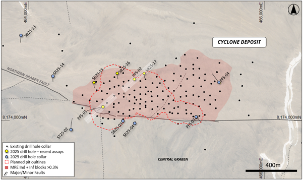 Assay results from the first two geotechnical/resource diamond drill holes at the Cyclone Deposit have been received and highlight the resource upgrade and expansion potential of the current proposed open pit design.