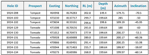 Table 1: Details for the 2024 regional exploration drill holes.