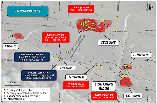 The drilling at the Cyclone Prospect is designed to expand and infill an upcoming maiden mineral resource estimate for the Storm Project that is currently being constructed to CIM standards and to explore the margins of the deposit for additional resources.