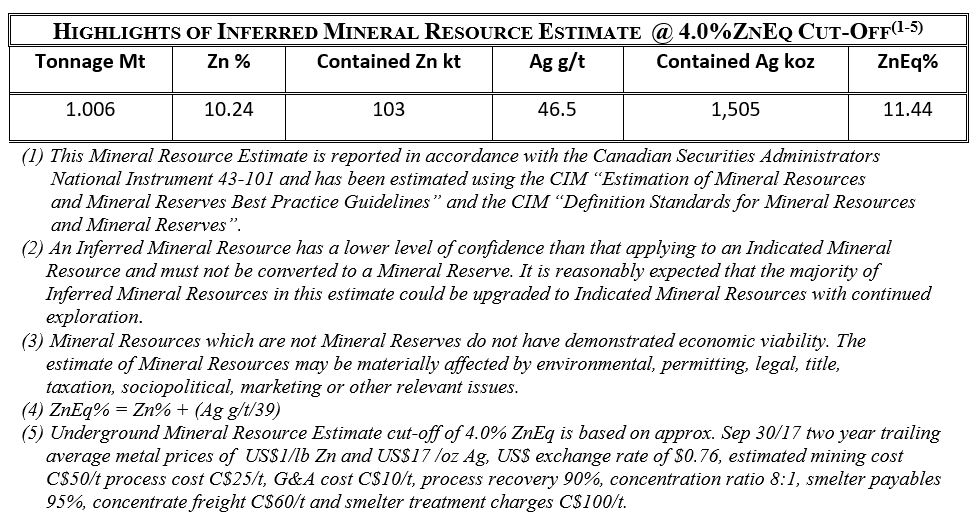 The report titled “Initial Mineral Resource Estimate and Technical Report for the Seal Zinc Deposit, Nunavut Property, Somerset Island, Nunavut” is effective as of October 6, 2017 and signed January 17, 2018 (the “Technical Report”). The Technical Report was authored by independent Qualified Persons at P&E Mining Consultants Inc., and is in accordance with National Instrument 43-101 – Standards of Disclosure for Mineral Projects. The Technical Report is available at the bottom of this webpage and at www.sedar.com under the Company’s profile.