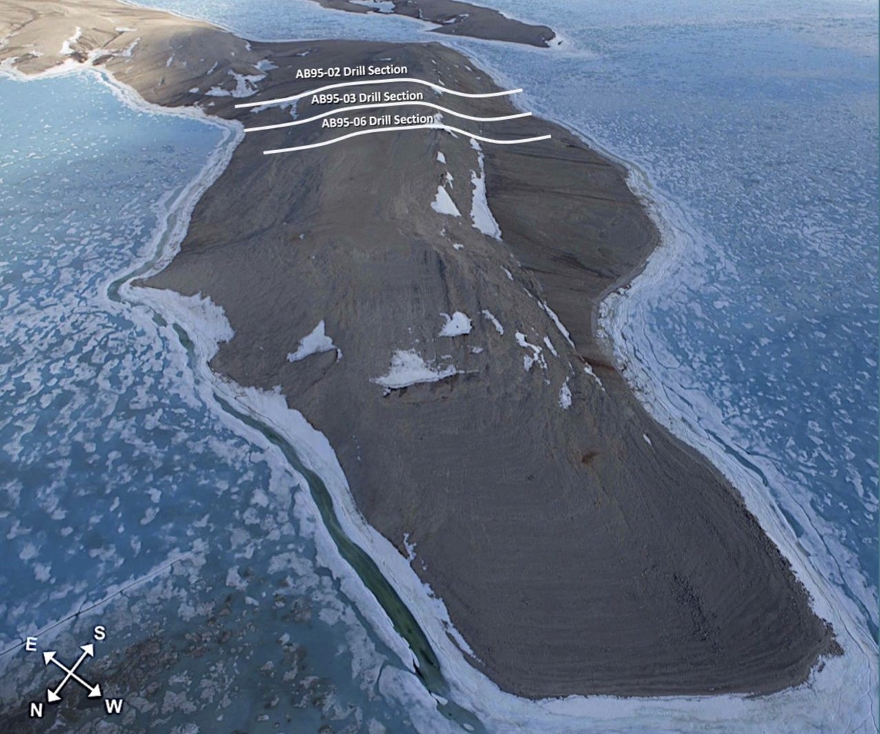 At Seal, only two holes were completed due to challenging weather conditions and an initial focus on Storm targets (Figures 7 and 8). Nonetheless, drilling was successful in discovering an interpreted extension of the Seal mineralised system approximately 1.2 km southwards along strike, in the northernmost part of the Seal South area and adjacent to tidewater. Drill hole AB18-06B targeted the extreme northern end of an 800m long positive gravity gradiometry anomaly (S12 on Figure 8) coincident with local subcropping sphalerite-pyrite mineralisation. After passing through locally weakly mineralised sandstone and dolomite of the lower Ship Point Formation, host to the Seal deposit, the drill hole intersected significant sphalerite mineralisation between 109.5 m and 136.0 m within moderately to strongly altered pseudobreccia, pyrite/marcasite and rubbly dolostone and limestone of the Turner Cliffs Formation. Results include: